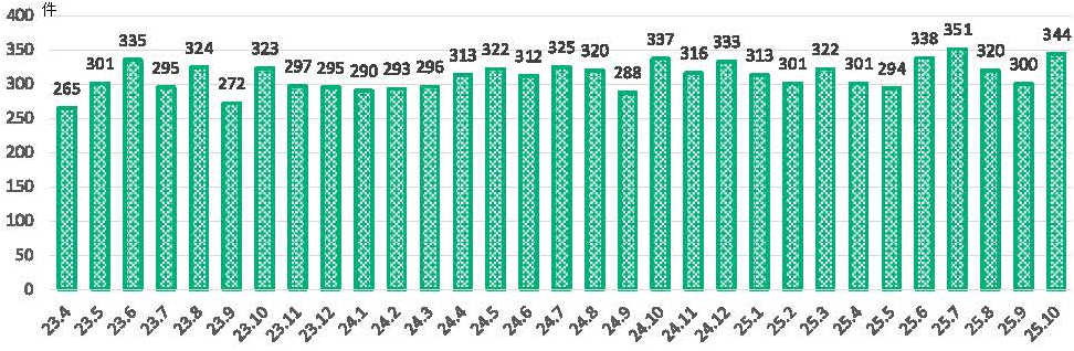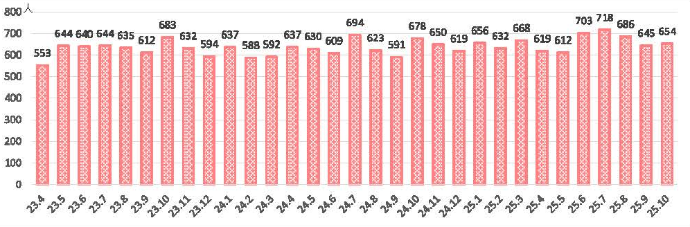 1か月間に新たに入院した患者さまの数を月平均で表したグラフです。