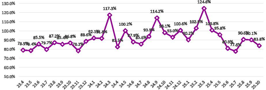 1ヶ月間に受け入れた救急車の件数です。今後も救急車の受け入れ環境を整え、より多くの受入れを行っていきます。